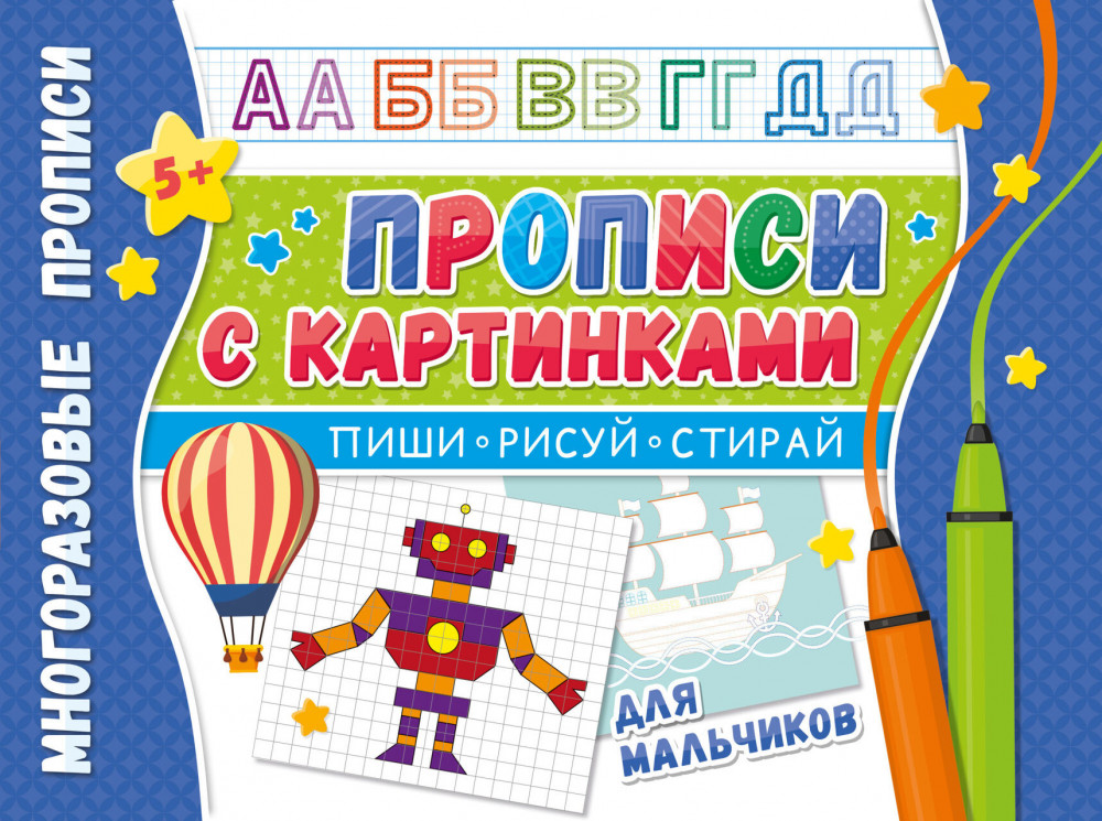 Многоразовые прописи «Напиши 100 раз. Прописи с картинками для мальчиков»+15