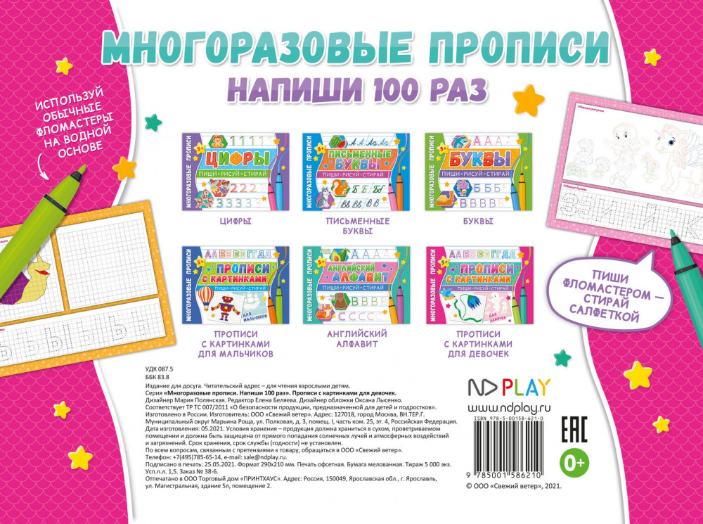Многоразовые прописи «Напиши 100 раз. Прописи с картинками для девочек»+15