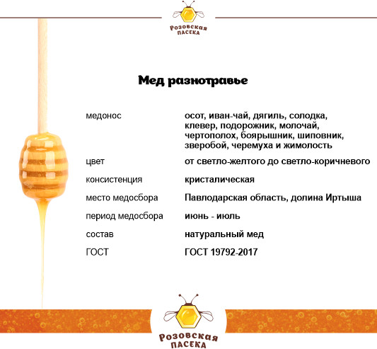 Розовская пасека Мед натуральный «Разнотравье»