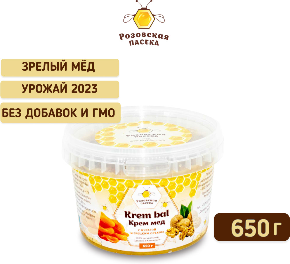Розовская пасека Крем-мед с курагой и грецким орехом