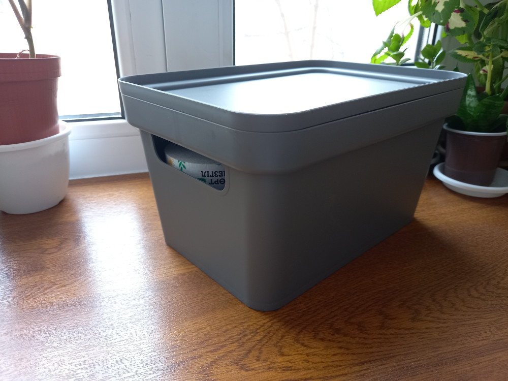 Ящик для хранения очень понравился. Пришёл без дефектов. Понравился всем: пластик не имеет запаха, очень приятный на ощупь, лаконичный дизайн. Заказывала в сером цвете. Буду заказывать ещё если понадобится. Советую всем, особенно кто занимается сейчас организацией пространства.