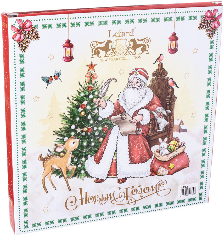 ТМ «Lefard» New Year Collection готовы украсить праздничный новогодний стол и радовать всех в самые ожидаемые дни в году. С 1699 года указам Петра Первого Новый год празднуется в ночь на 1 января каждого года (по юлианскому календарю). Символом праздника стал дедушка с белой бородой, имя которого — Дед Мороз, и его помощница — девочка из снега по имени Снегурочка. Изделия с любимыми персонажами и нарядной новогодней Елкой выполнены на тонкостенном высококачественном фарфоре. Посуда упакована в яркие коробки. Это прекрасный подарок. Продукция прошла сертификацию, безопасна для контакта с пищевыми продуктами. Не рекомендуется использовать в микроволновой печи, мыть в посудомоечной машине.