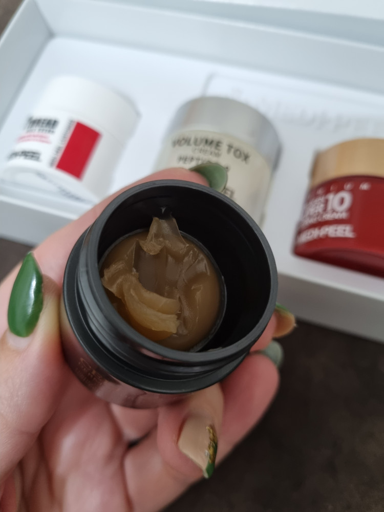 Medi-Peel Volume Tox Cream Peptide 9: Purified Water, Methyl Propane Diol, Glycerin, Dimethicone, Cyclopentasiloxane, 12-Nucleic Acid Diol, Caprylic / Caproxyl Triglyceride, Cetaryl Alcohol, Cetaryl Olate, Cyclo Hexasiloxane Sein, Solbi-Tanol Rebate, Glyceryl Stearate, Pentaerythritol Tetraisostearate, Piza-100 Stearate, Cetaryl Glucoside, Arginine, Carbomer, Sodium Acrylate / Sodium Acryloyl Dimethyl Taurate Cocolate Polymer, Isohexadecane, Trehalose, Sunflower Seed Oil, Xanthan Gum, Adenosine, Polysorbate 80, Sodium Hyaluronate, Disodium Itiate, Solbitan Oleate, Stone Soybean Oil, Desamido Collagen , Cypress Fruit Extract, Decadent Thick Bark Extract, Eucalyptus Leaf Extract, Fructan, Hydrol Izde collagen, butylene glycol, fragrance, hydrogenated polyisobutene, anatose oil, propane diol, glyceryl dooly methacrylate, sodium hyaluronate crosspolymer, sorbitan laurate, propylene glycol , Hydrolyzed deglycosaminoglycan, nonoxynol-12, phenoxy ethanol, Irish moss extract, tocopherol, hydroxyethyl cellulose, benzyl glycol, acetyldipeptide-1 cetyl ester (0.8ppm), as Tarzanine, Ethyl Hexanediol, Hydrolyzed Elastin, Hydrolyzed Hyaluronic Acid, Ethyl Hexyl Glycerin, Palmitoyl Tripeptide-5 (0.1ppm), Caprylralglycol, Jimmy Root Extract, Acetyl Hexapeptide-8 (0.01ppm), copper tripeptide-1 (0,01ppm), palmitoyl pentamemide -4001 pp m), hyaluronic acid, acetyl octapeptide-3 (0.005 ppm), palmitoyl tetrapeptide -70005 ppm), hexafeltide -90.005 ppm), raspberry ketone, palmitoyl oligopeptide (0.001 ppm), palmitoyl Tripeptide-1 (0.01ppm).