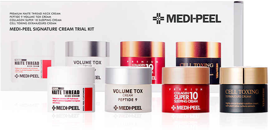 Medi-Peel Collagen Super 10 Sleeping Cream: Purified Water, Glycerin, Niacinamide, Dimethicone, Fiji -240 / E.Diicopolymer Bismuth-decyl Tetradeceth-20 Ether, Butylene Glycol, Oat Powder Extract, Dimethicone / Vinyl Dimethicone Cross Polymer, Hydroxy Acetophenone, Fiji-10 Dimethicone, Glyceryl Stearate, Low Sweet Blueberry Extract, Garlic Extract, Sweet Almond Oil, Squalane, Spinach Extract, Tomato Fruit / Leave / Stem Extract, Wine Extract, Blood Easy-60 Hydrogenated Castor Oil, Hydrolyzed Collagen, Walnut Extract, Propane Diol, Fiji-100 Stearate, Al-Han, Carbomer, Ethyl Hexyl Glycerin, Allantoin, Trehalose, Flavoring, Adenosine Disodium dithiate, sodium hyaluronate, green tea extract, argan kernel oil, jojoba seed oil, Lamide N-Py, Hydrogenated Lecithin, Aloe Vera Leaf Extract, Dipropylene Glycol, Glyceres-20, Bioflavonoid, Fiji-10 Grape Seed Sterol, 1,2-hexanediol, Olive Tree Leaf Extract, Spain Licorice Root Extract, Western Dandelion Leaf Extract, Broccoli Extract, Oregano Leaf Extract, Cypress Leaf Extract, White Willow Bark Extract, Lactobacillus / Ball Ferment Extract, Purslane Extract, Broiler Bark Extract, Golden Wine Extract, Damask Rose Flower Extract, Rock Stone Root Extract, Ussonia Extract, Cedar Fruit Extract Halmiflower Extract, Acetyl Hexapeptide-8, Copper Tripeptide-1, Oligopeptide-29, Oligopeptide-32, Palmitoyl Pentapeptide-4.