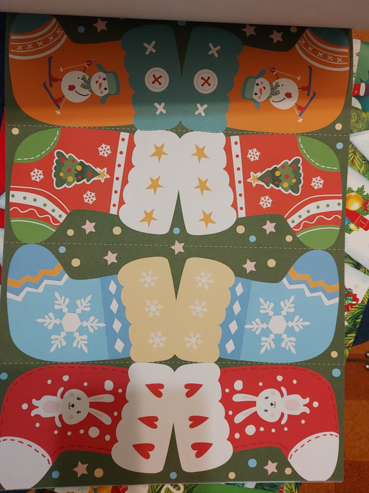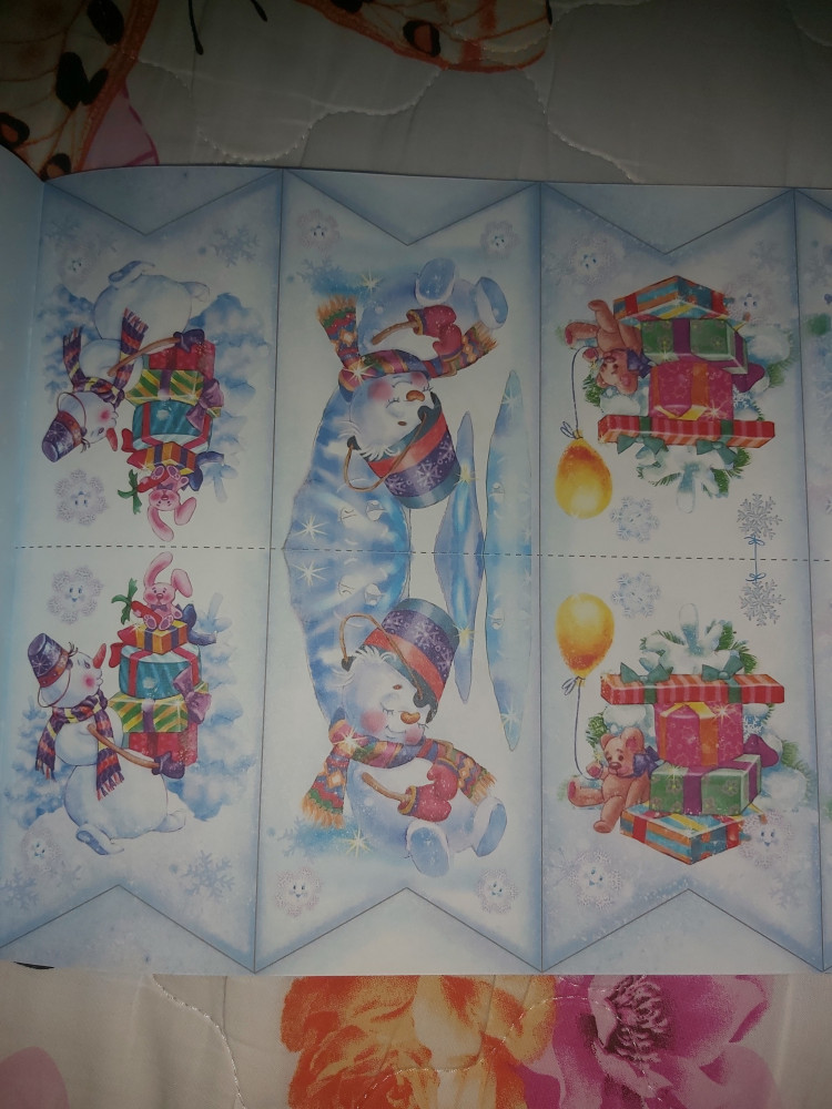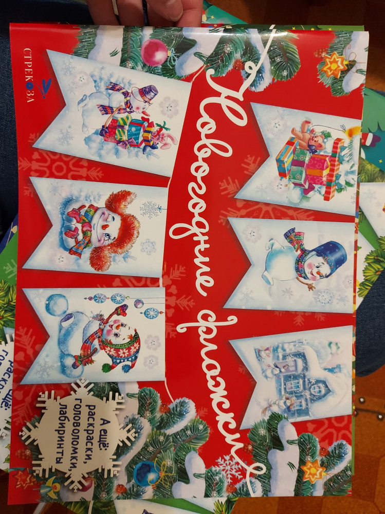 Журнал содержит в себе выкройки флажков (30 шт) с изображением милых снеговиков, белочек, зайчиков и прочей милоты и бонус - головоломки для детей старше 3х лет. Сами рисунки не очень яркие, но это даже не минус, очень мило смотрится гирлянда из флажков. Дочка до головоломок еще не доросла, а вот с флажками мы быстренько расправились. Ощущение праздника, причастность к предстоящему торжеству - что еще надо? Нам несомненно понравилось.