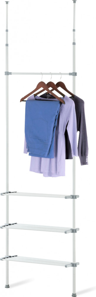 Мечта для любой гардеробной! Эта система предлагает достаточно места для платьев, пальто, пиджаков, брюк и рубашек. Одну штангу и три полки (размер каждой 68 на 26,5 см.) можно регулировать по высоте и менять местами.