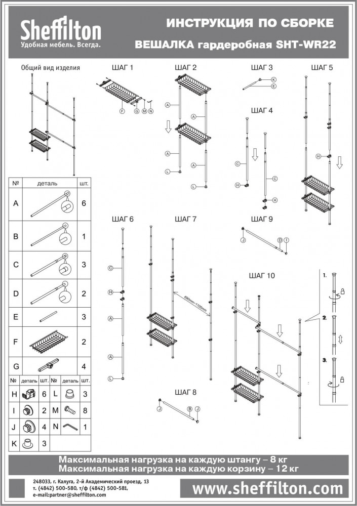 Максимальная статическая нагрузка на каждую корзину — 12 кг.