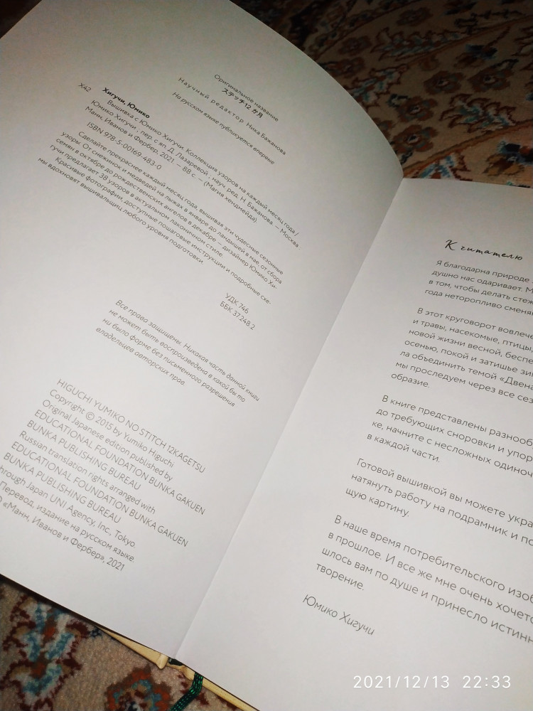 Вышивка с Юмико Хигучи. Коллекция узоров на каждый месяц годаВ данный момент этот товар отсутствует в продаже. Возможно, у нас найдется аналогичный или похожий товар здесь. Серия: Handmade Сделайте прекраснее каждый месяц года, вышивая эти чудесные сезонные узоры. Следуйте за переменами в природе и мире месяц за месяцем: от снежинок и медведей на лыжах в январе— до ландышей в мае, от сбора семян в октябре — до рождественских ангелов в декабре. Дизайнер Юмико Хигучи предлагает 38 узоров в актуальном лаконичном стиле — красочных, милых и радующих глаз. Повесить вышивку на стену в рамке или украсить ей что-то полезное — выбор за вами. |