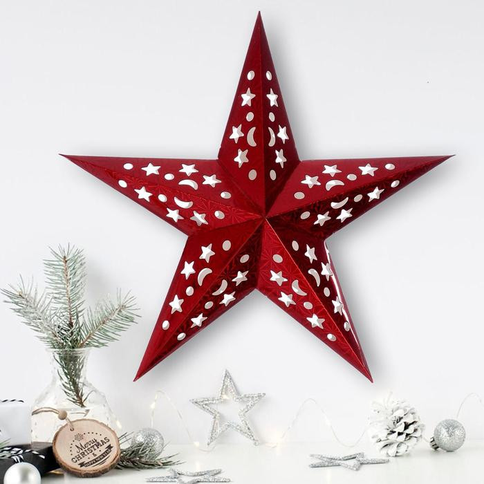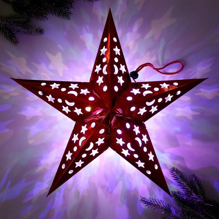 Звезда большая, плотный картон, гирлянда внутри, включаются кнопкой На один раз норм