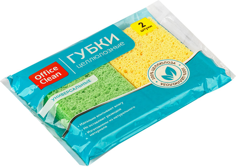 OfficeClean Губки бытовые целлюлозные-20% +22 хорошо отмывает 100% целлюлоза быстро сохнут твердеют долговечные