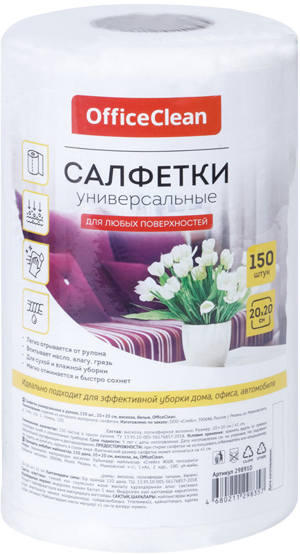 OfficeClean Салфетки универсальныеудобные маленький размер не подходят В данный момент этот товар отсутствует в продаже. Возможно, у нас найдется аналогичный или похожий товар здесь. Серия: Professional Салфетки универсальные «OfficeClean» в рулоне, для любых поверхностей, для сухой и влажной уборки, легко отрывается от рулона, мягко отжимается и быстро сохнет, впитывает масло, влагу, грязь. Легко стираются, долговечны в использовании. |