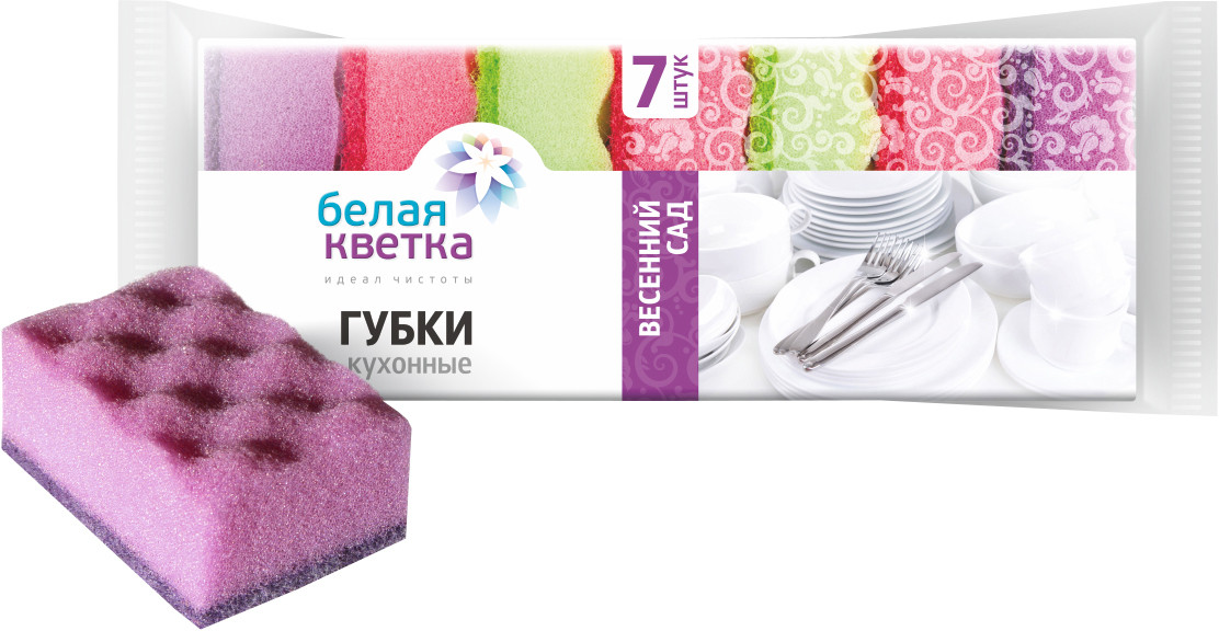 Белая кветка Губки кухонные «Весенний сад»+21 компактный размер удобный захват яркий цвет мягкие