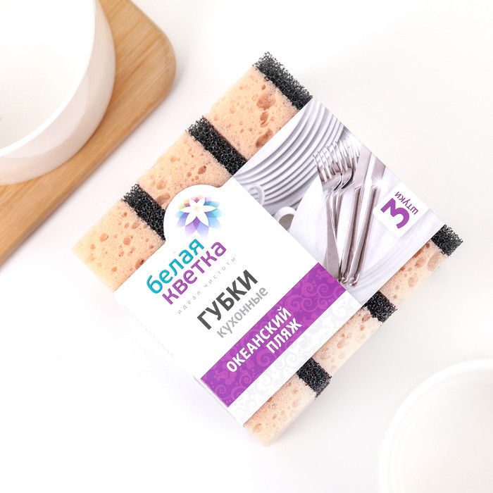 Белая кветка Губки кухонные «Океанский пляж»+37 удобный размер хорошее пенообразование хорошее качество