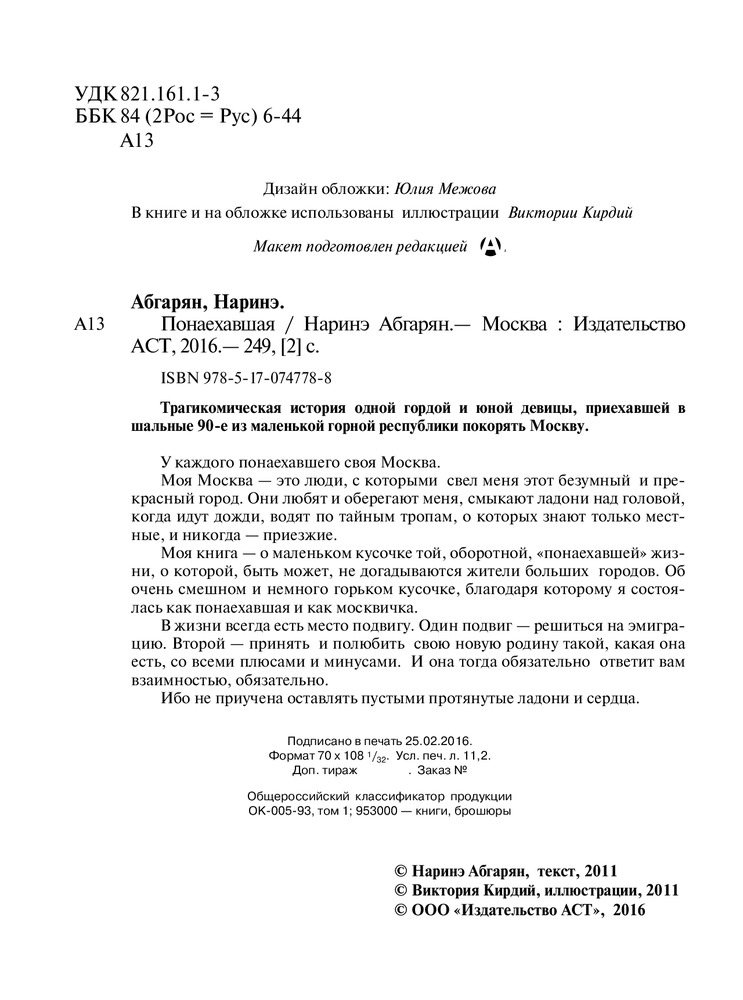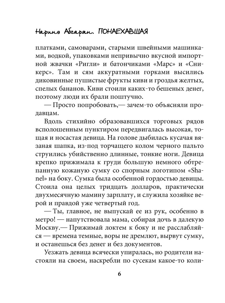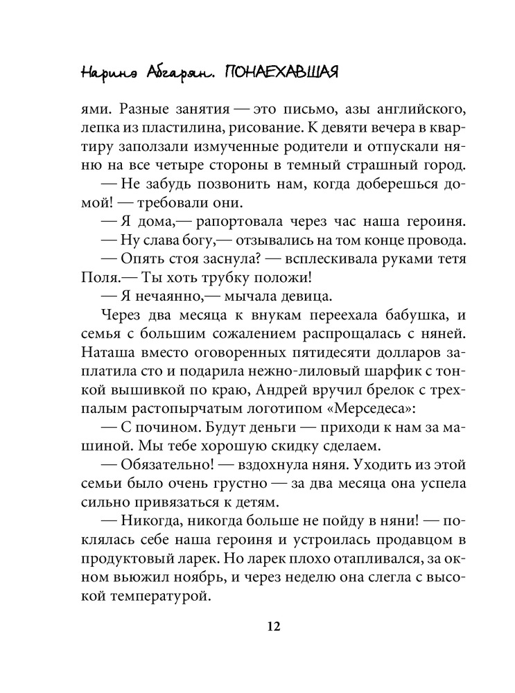 Потрясающая книга, пропитанная реалиями 90-х. Ненормативная лексика, действительно, присутствует, однако без нее там никак, уж поверьте ))))) Не нашла ни одной попытки автора "возвыситься, унижая все и всех вокруг". Наоборот, о каждом человеке, встретившемся на жизненном пути Понаехавшей, написано с любовью и благодарностью. Как всегда у Абгарян (Манюнина трилогия) - ночью лучше не читать - побудите все семейство диким хохотом. Однозначно читать!