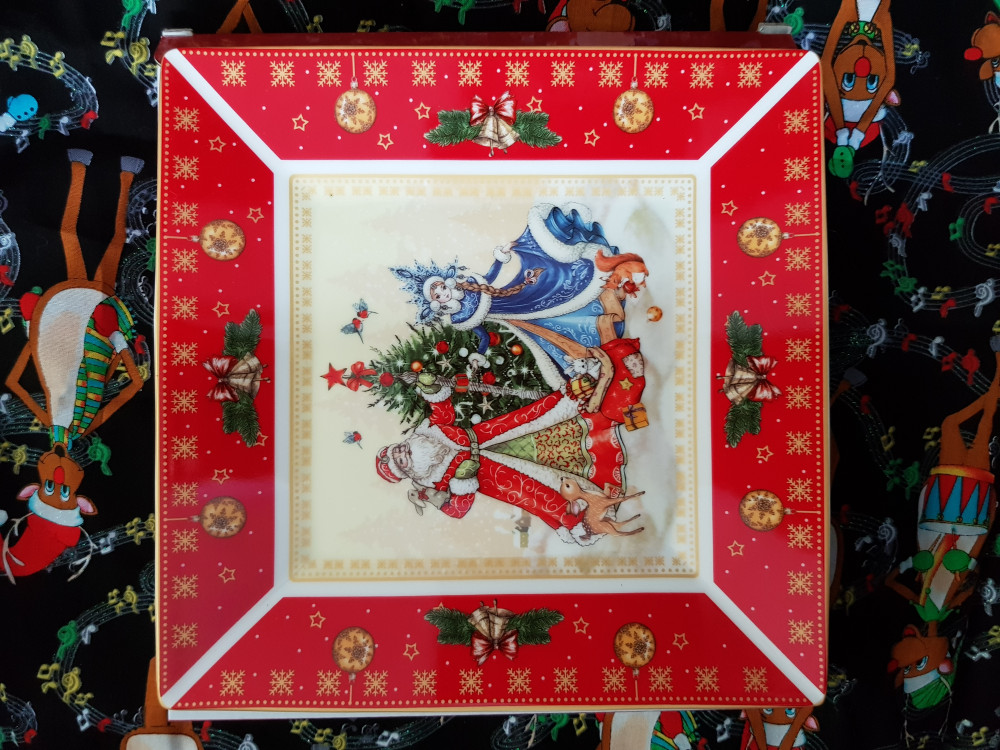 Очень довольна приобретением. Хороший фарфор, красивый яркий рисунок, как на фото, и качественное исполнение. Тарелка плоская, соответствует заявленным размерам. Будет прекрасным украшением новогоднего стола.