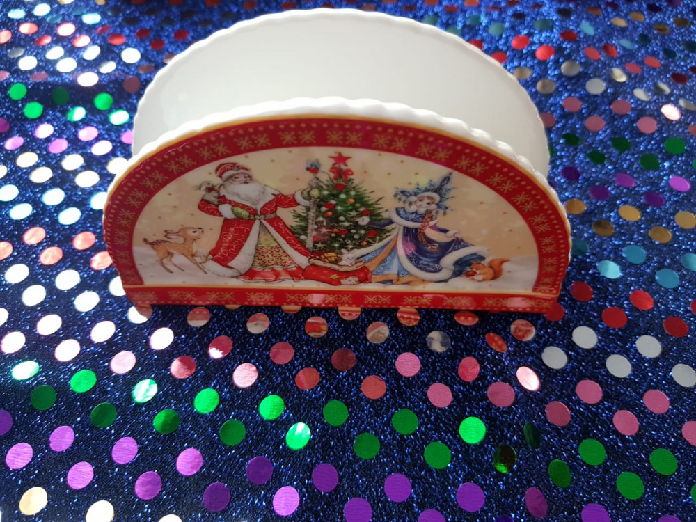 Красивая новогодняя салфетница. Отлично дополнит ногоднюю сервировку. Упакована в красивую коробку. Спасибо!