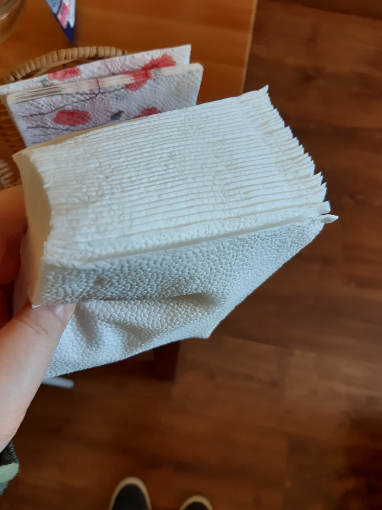 Салфетки тоненькие, по этому расход большой, а как бумага хорошая не прилипает к рукам.