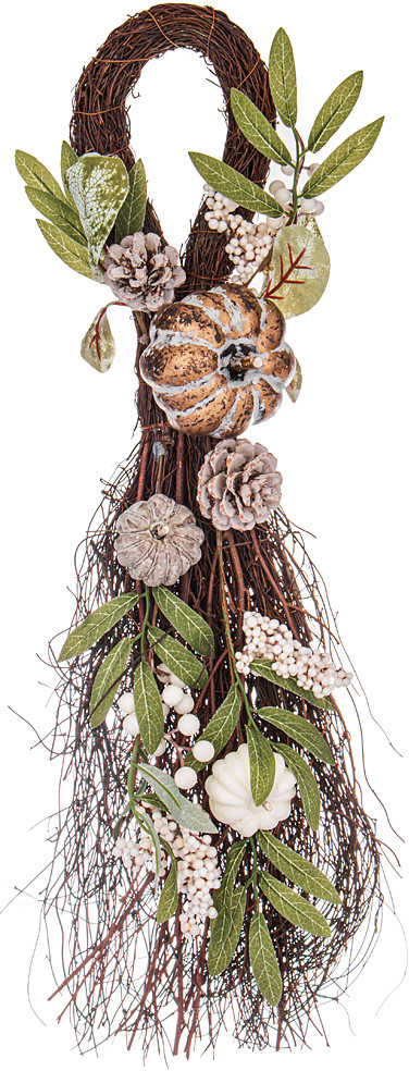 Букет точно как на фото. Имейте ввиду-основа-это натуральный сухостой. Шишечки тоже настоящие. Листочки из ткани. Я думаю не вешать его, а поставить петлей в вазу. Думаю, будет не хуже. Можно букет дополнить чем-то ярким, будет празднично или менять дополнения, в зависимости от сезона.