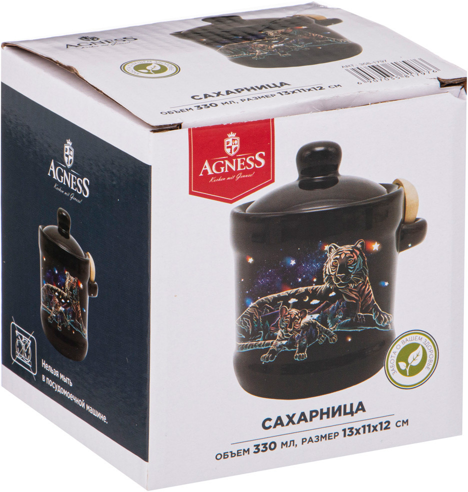 Сахарница изготовлена из керамики. Имеет удобную крышку, которая защищает сахар от влаги и прямых солнечных лучей, что позволяет ему долго оставаться свежим и вкусным. А стильный дизайн принесет уют и хорошее настроение в ваш дом.