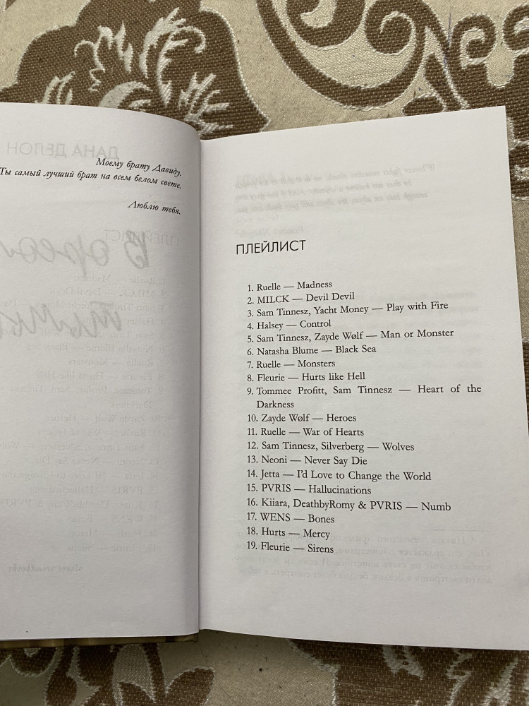 офигенная книга, выглядит очень хорошо и круто. целая, без всяких проблем пришла. в книге есть плейлист для чтение, это вообще очень удивило и порадовало