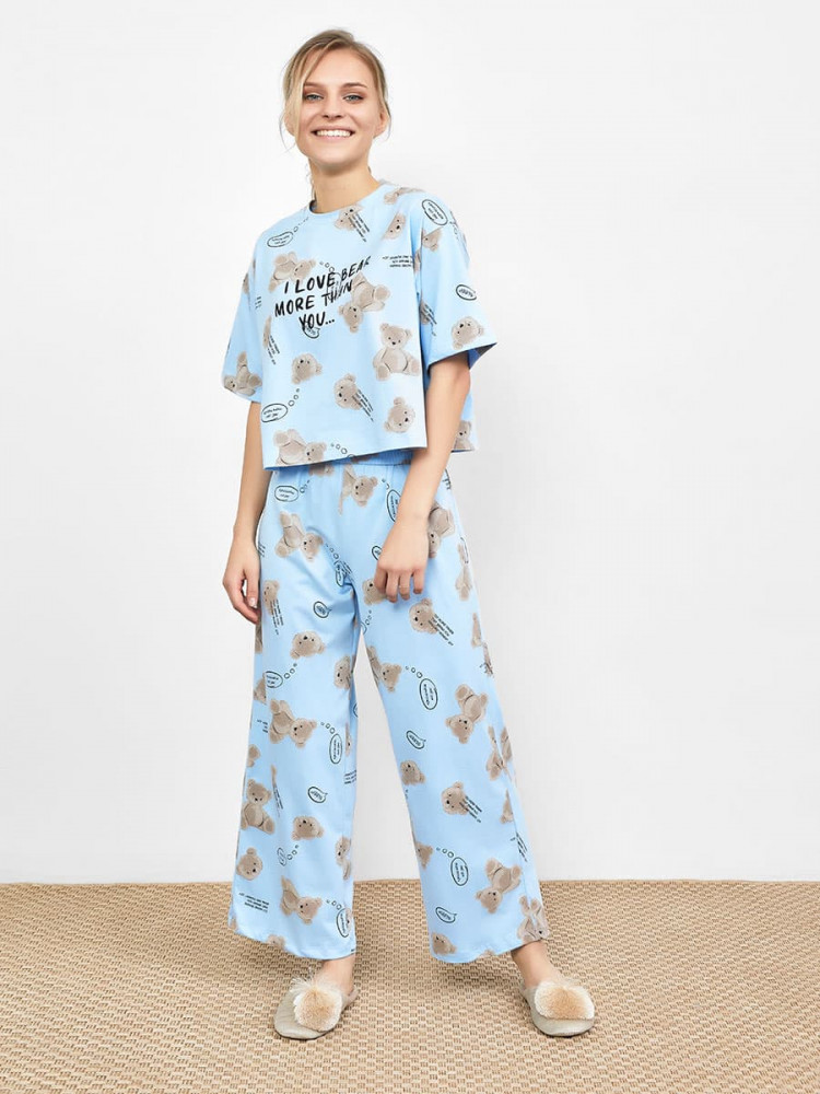 Купила как пижаму, но можно носить как домашнюю одежду. Хорошего качества, чистый хлопок ! Размер соответствует, брала 48, рост 164-170, на рост 161подошел, укорачивать брюки не нужно.Рекомендую к покупке.