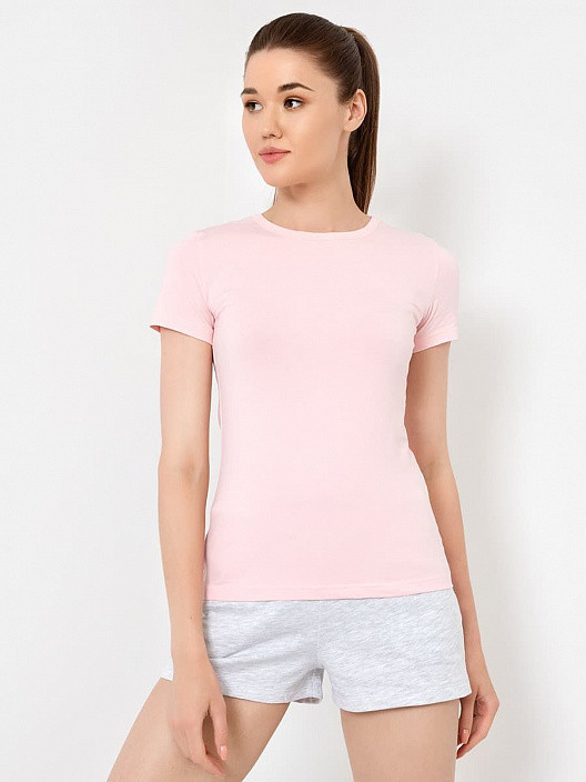 Цвет не такой нежно-розовый, как на фото, скорее бежевый. В целом хорошая футболка на лето, не слишком плотная, но и не тоненькая ткань.