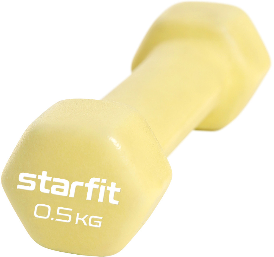 Гантель с неопреновым покрытием обладает хорошим сцеплением с ладонью. Особенность покрытия — поглощение материалом части влаги с ладоней. Гексагональная форма устраняет проблему перекатывания гантели по полу.