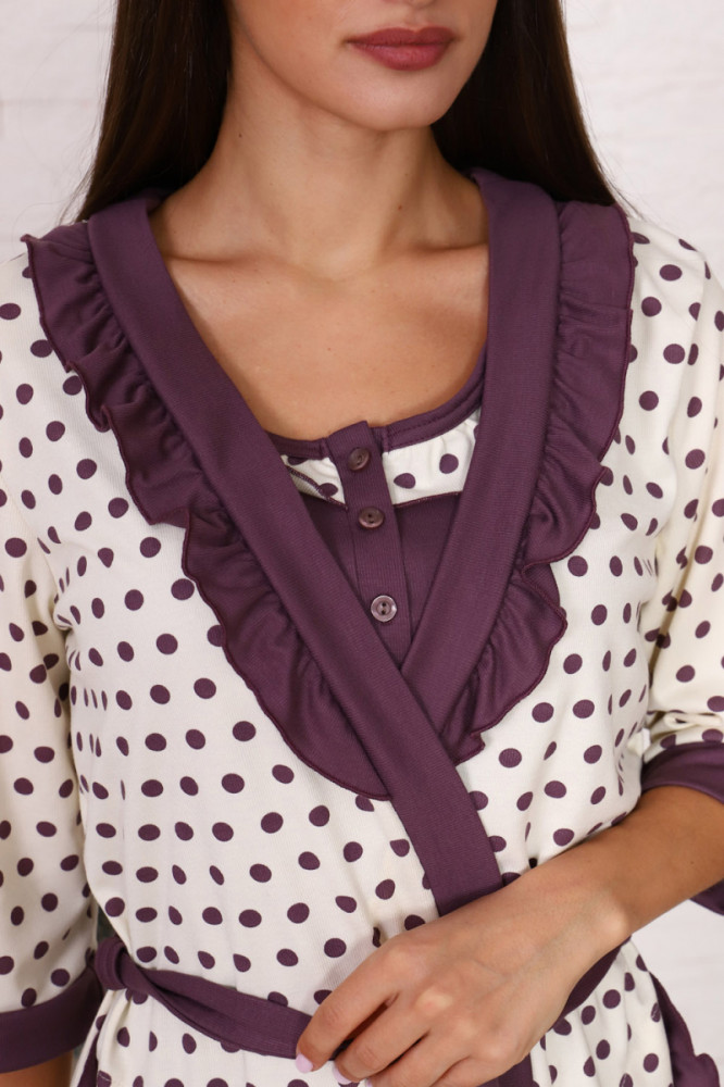 Очаровательный комплект, состоящий из сорочки и халата. Сорочка свободного кроя, длина сорочки чуть выше колен. Халат с рукавами три четверти, завязывается поясом на запах. Изготовлен из хлопка с добавлением полиэстера. Комплект выгодно подчеркнет Вашу женственность.