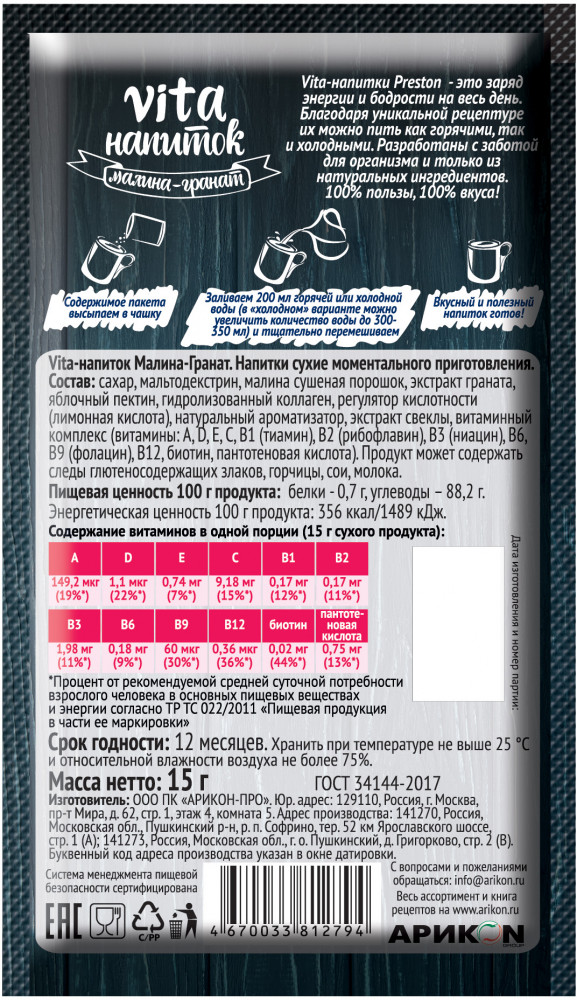Preston Напиток моментальный «Малина и гранат»