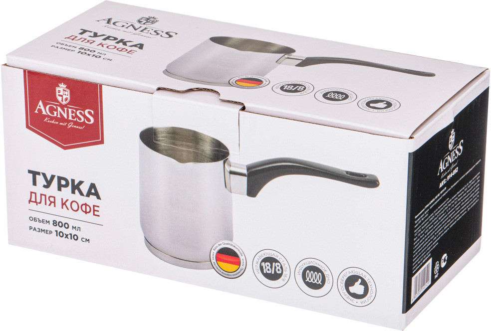 💳 Оплатить за товар можно при получении 🇰🇿 Есть бесплатная доставка по Казахстану от 1 дня 🎁 Копите бонусы с каждой покупки Самый вкусный кофе — кофе приготовленный в турке! Бренд «Agness» представляет турки для кофе с капсульным дном. Турка выполнена из высококачественной пищевой стали марки 18/8. Не нагревающаяся ручка — можно не использовать прихватку. Носик для слива — удобно разливать напиток по чашкам. Благодаря капсульному дну с прослойкой из алюминий — турка быстро и равномерно нагревается. |
