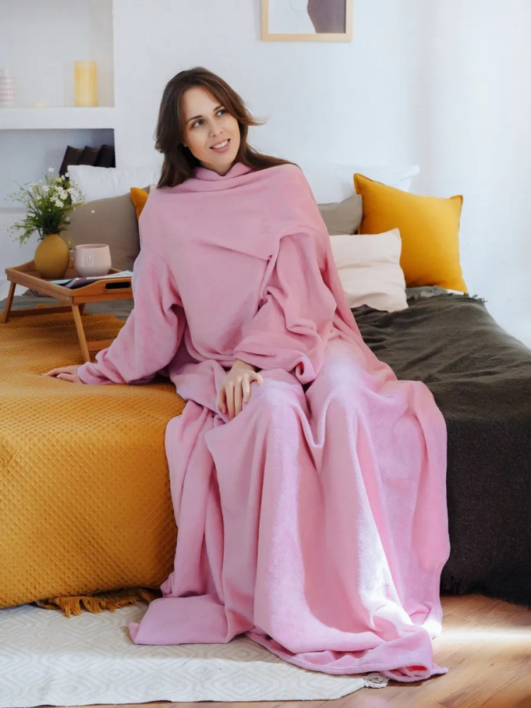 Качество отвратительное, темно красный плед прошит и обверложен белыми нитками, рукава пришиты не аккуратно, плед весь был усыпан обрывками белых ниток. Брала на подарок. Полное разочарование. Никому не советую.