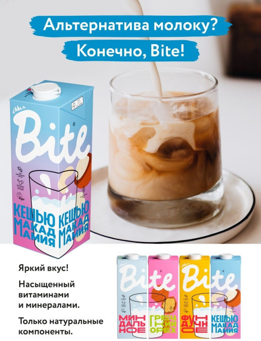 Bite Молоко растительное «Кешью и макадамия»+70 вкус кешью полезное аромат орехов