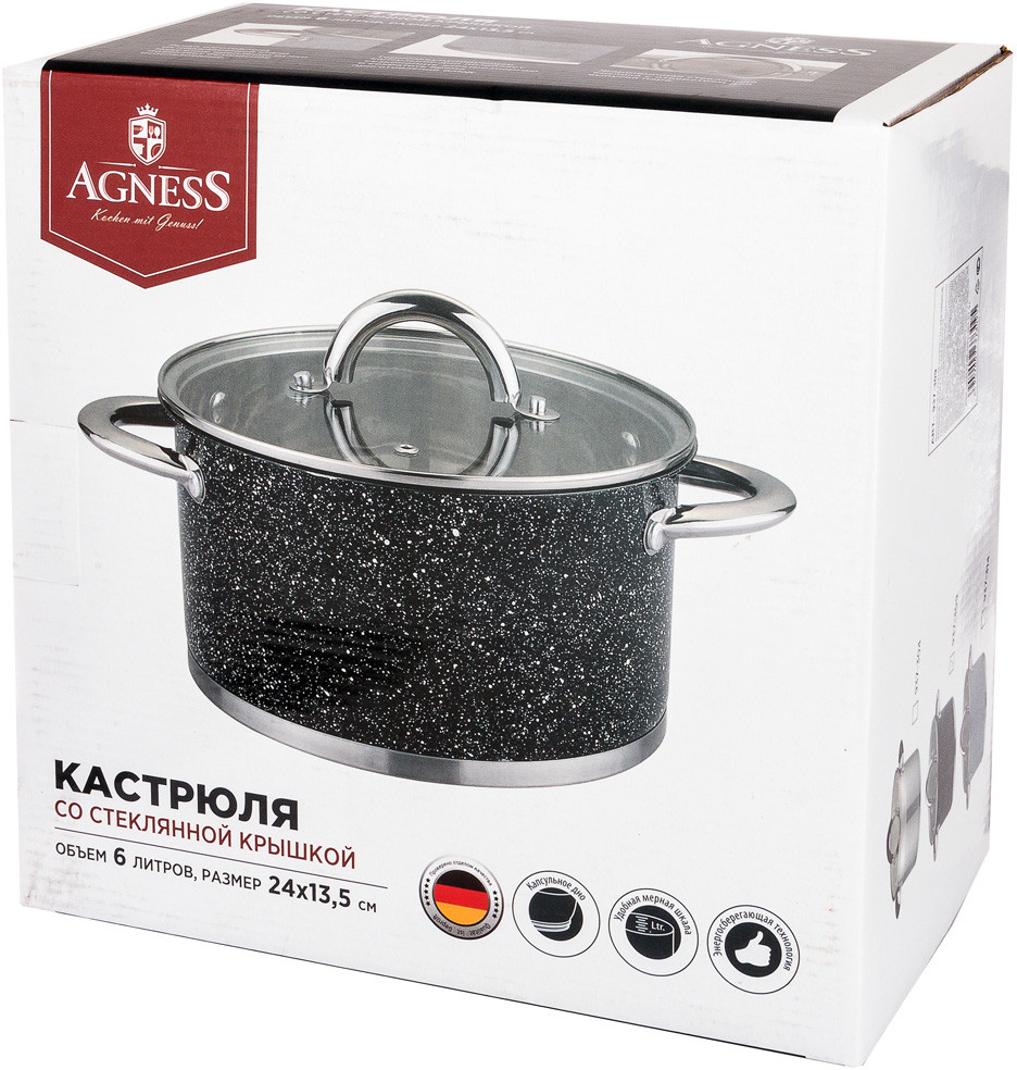 6 адамнан тұратын жанұяға өте ыңғайлы ыдыс. Сорпа пісірсең де, ет ассаң да еркін сыяды. Диаметры 24 см, нағыз қолайлы өлшем. Қақпағындағы Agness жазуы, теріс қарап тұр. Әлде бұл фирманың ерекшелігі ме, әлде маған сондай қақпақ тап келді ме, білмедім. Қате басылған жазу ыдыстың функциясына дым әсер етпейді. Қақпақты ашып, төңкерсем жазу дұрыс шығады. Ризамын!