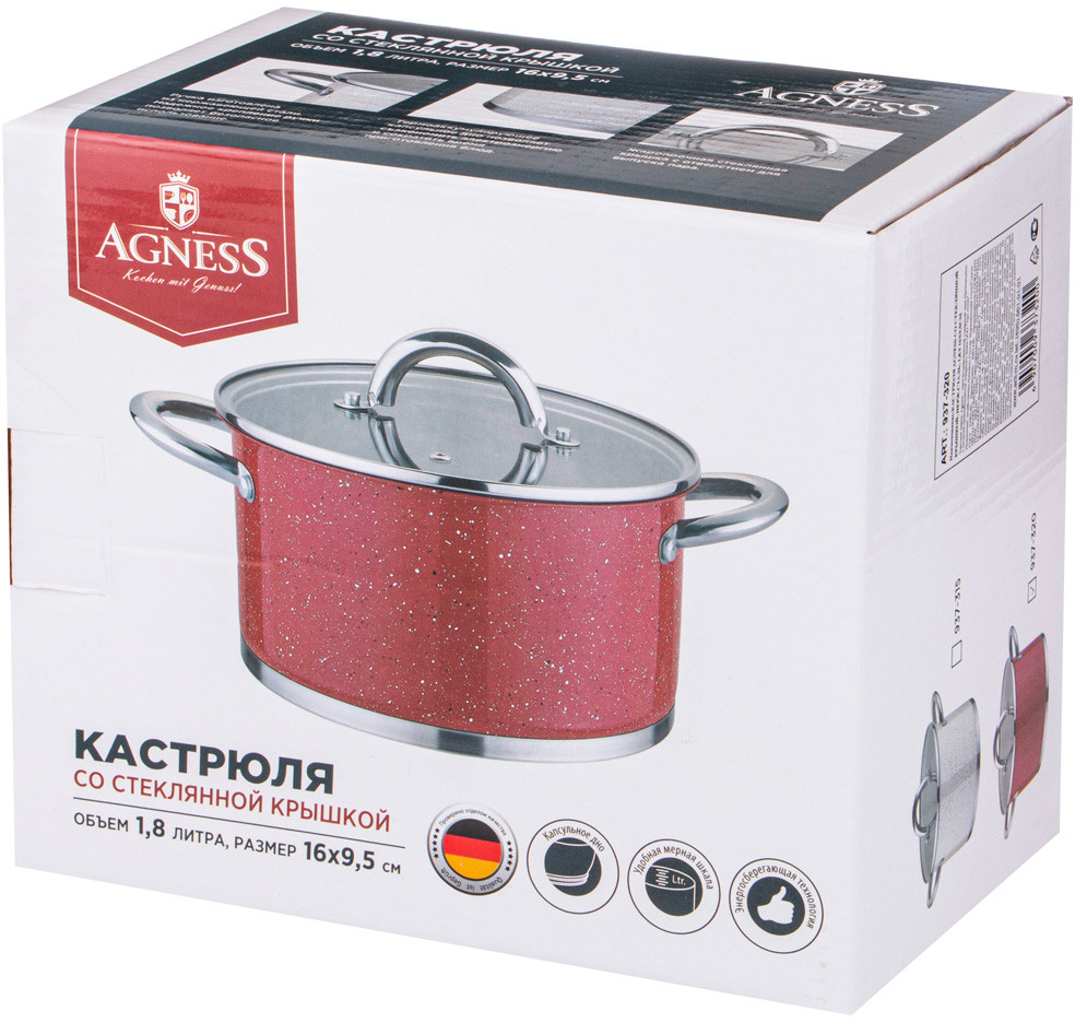 Agness Кастрюля с крышкой «Red Marble»