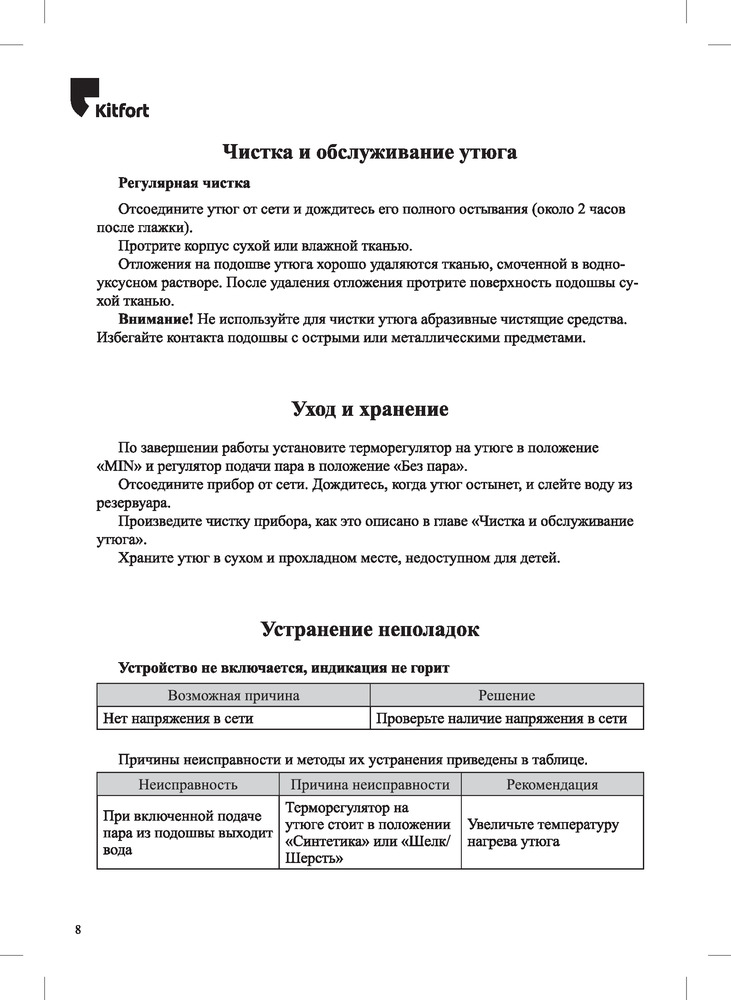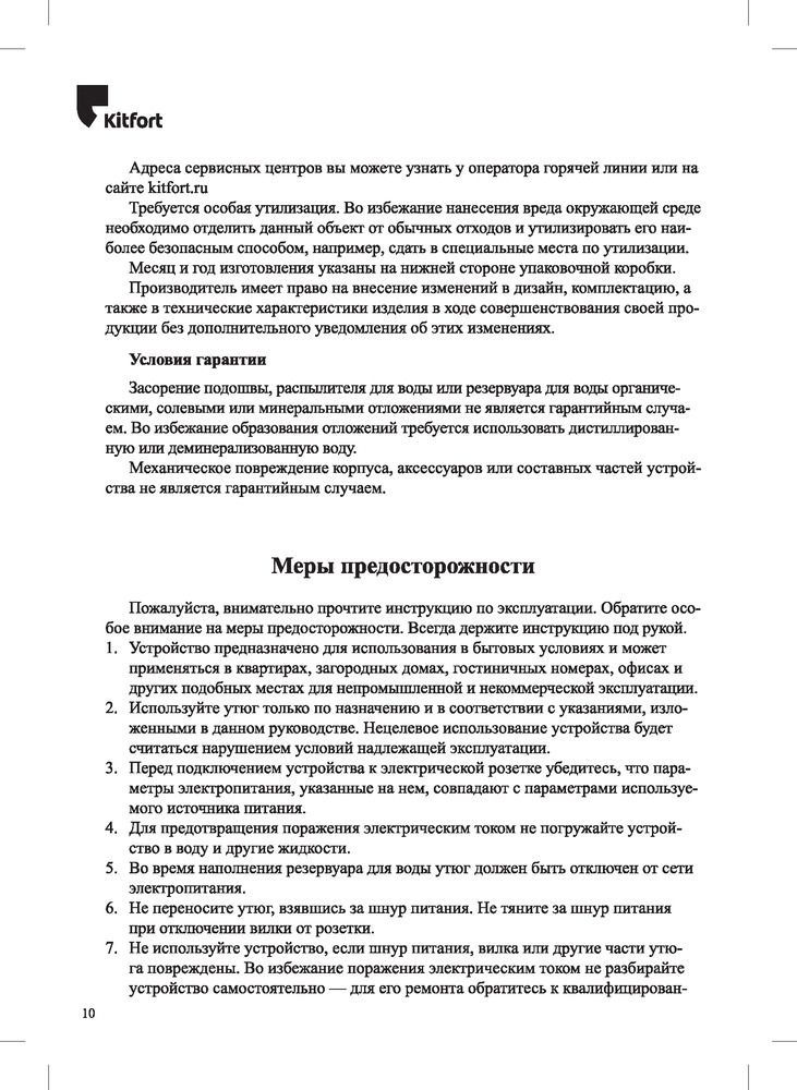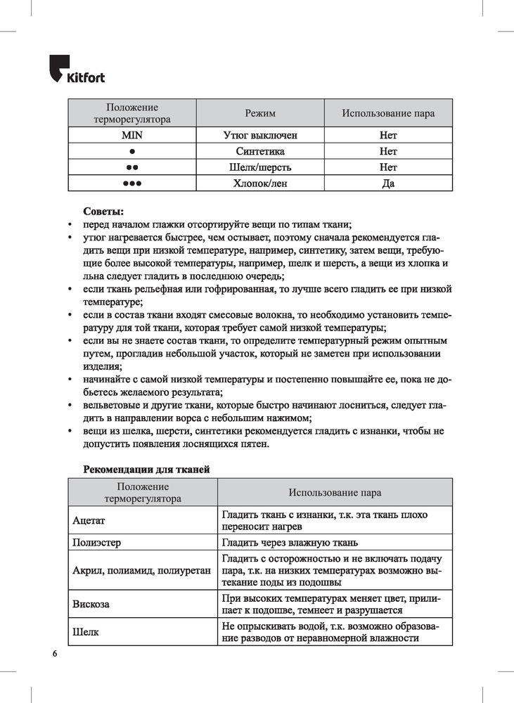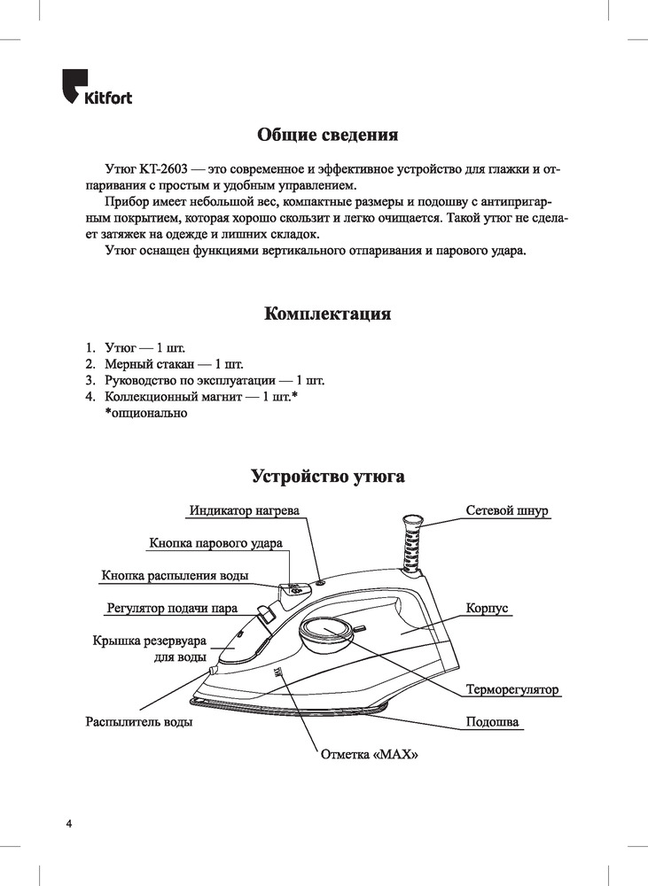 Компактный утюг Kitfort КТ-2603 – это современное и эффективное устройство для глажки и отпаривания с простым и удобным управлением. Он станет верным помощником в поддержании вашего гардероба в идеальном состоянии!