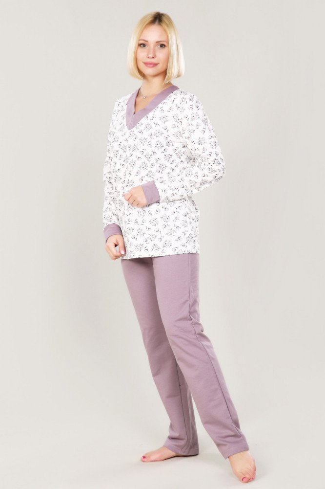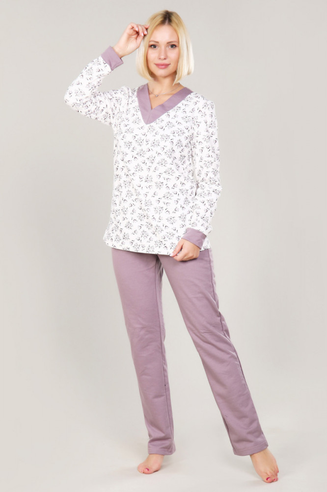 Пижама с начесом, теплая. На 48 размер кофта широкая, а штаны при этом в обтяжку. Расцветка блеклая, как будто застиранная. На фото выглядит симпатичнее.