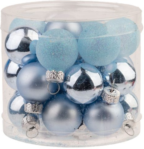 Странное описание, шары с узорами, нет никаких узоров, все шарики в одной коробке, очень мелкие и получается, что блестящих шаров много, а матовых м ярких голубых очень мало. Действительно хрупкие, но на маленькой елочке смотрятся достойно и аккуратно. На большую елку только по три штуки.