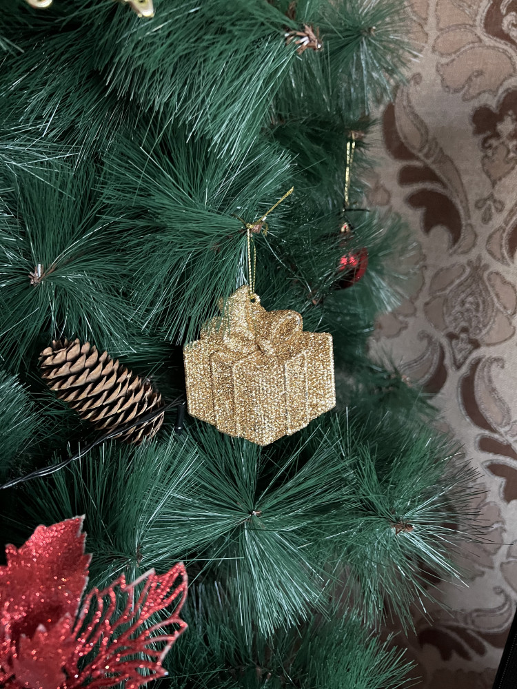 Елочная игрушка вполне хорошая, в цене - качество не уступает более дорогим аналогам, блески на игрушке очень качественные, да линии на игрушке увеличивают 3D эффект в форме подарочного сюрприза