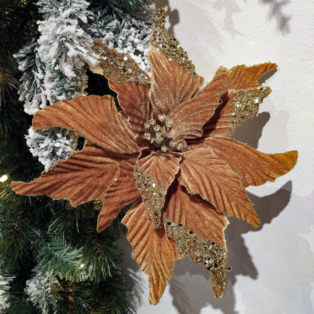 Красивый цветок - качественный, аккуратно сделан - делает елку богато украшенной .