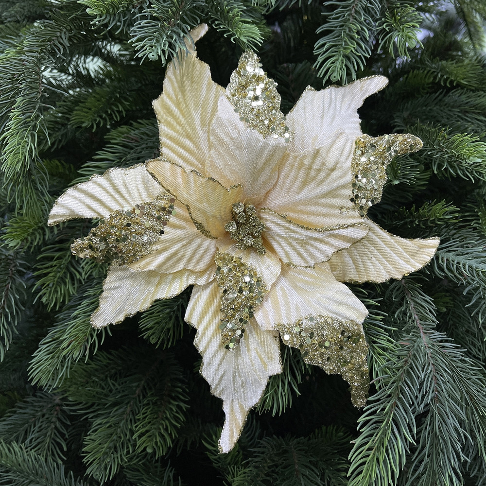 Красивый цветок - качественный, аккуратно сделан - делает елку богато украшенной .
