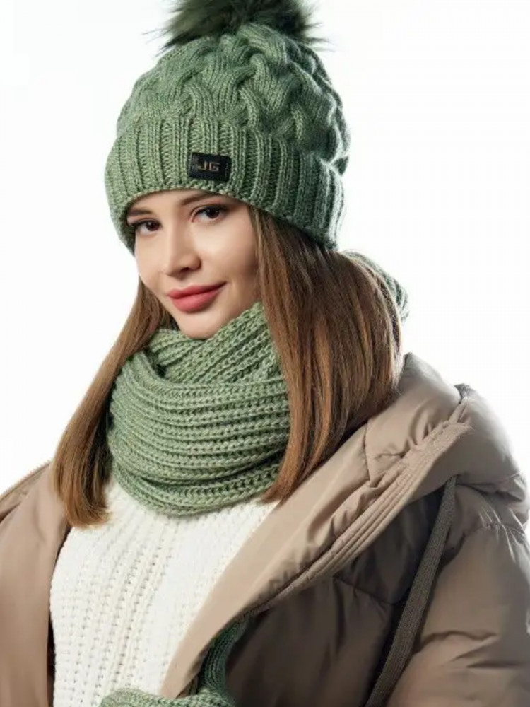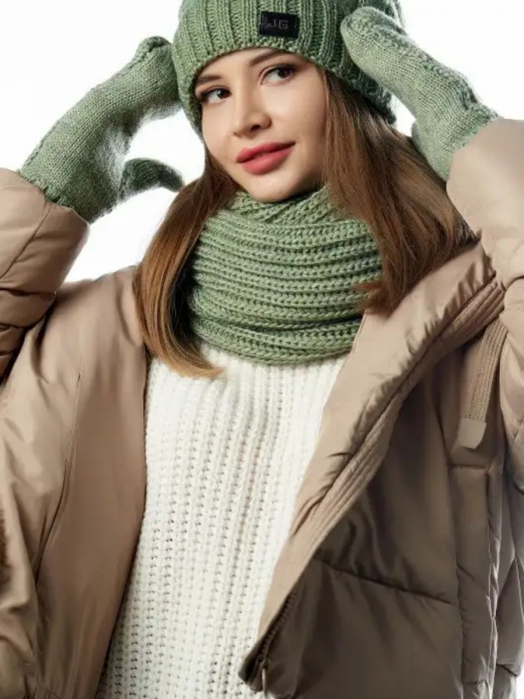 Красивый комплект, всё понравилось и вязка, и цвет, и материал, и качество. Снуд, шапка и варежки очень тёплые и удобные!