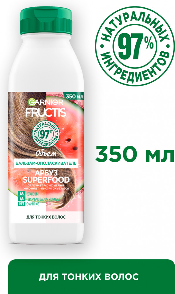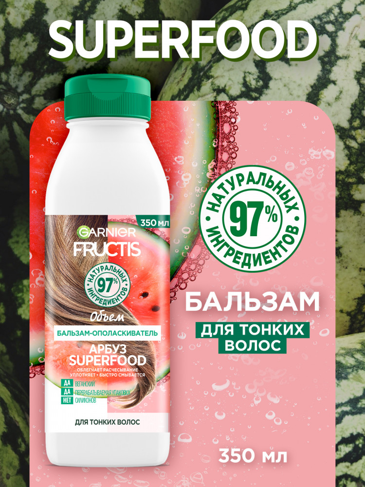 Garnier Бальзам-ополаскиватель«Superfood Арбуз» объем, для тонких волос