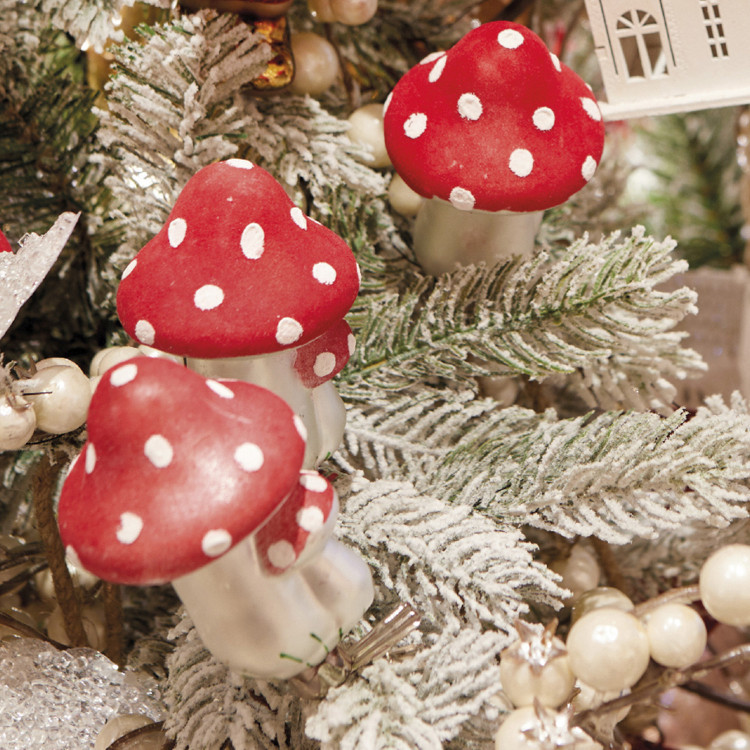 Причудливое украшение в виде гриба на удобной клипсе для идеального размещения на ветвях новогодней ели, или дереве в саду, добавят красочное настроение в праздничные дни. Это украшение на вашей елке будет символизировать красоту природы и надежду на удачу в наступающем году. Впрочем наполните гриб своим собственным смыслом и символом! С красной шляпкой и серебристой ножкой украшение изготовлено в сочетании с маленьким грибочком в виде мухоморов. Грибы напоминают нам о природе и красоте леса.