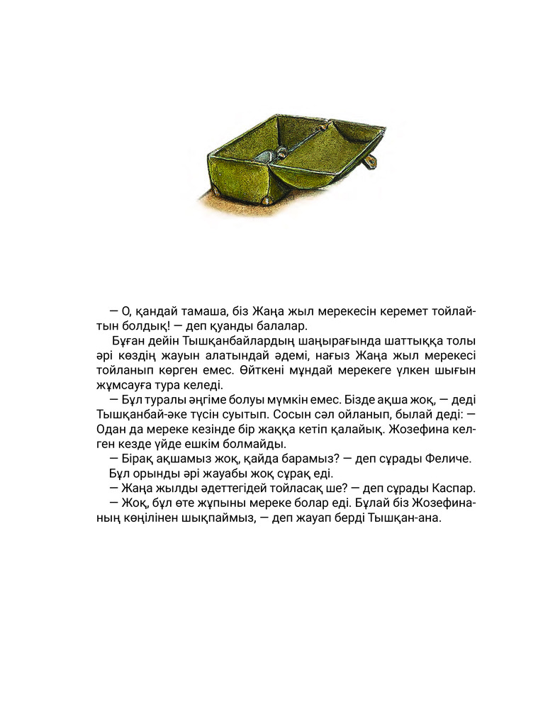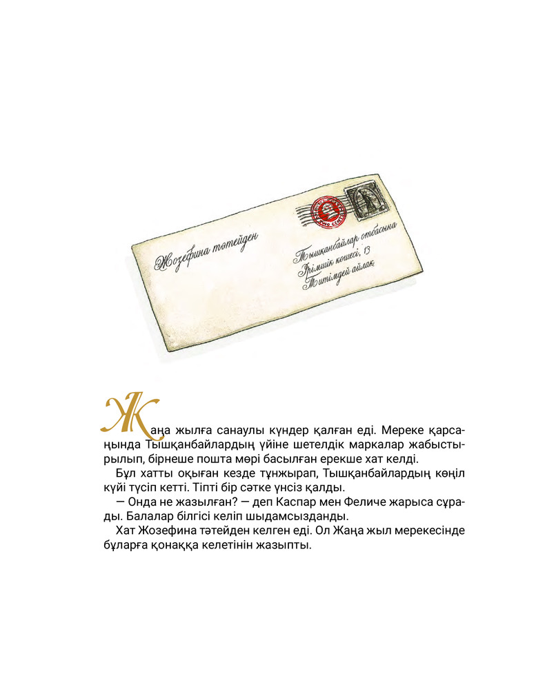 💳 Оплатить за товар можно при получении 🇰🇿 Есть бесплатная доставка по Казахстану от 1 дня 🎁 Копите бонусы с каждой покупки Тышқанбайлардың отбасы Жаңа жыл мерекесінің қарсаңында шетелдік маркалар мен пошта мөрі соғылған хат алды. Хат көп жыл бұрын Америкаға кетіп, сол жерде танымал ысқырықшыға айналған Жозефина тәтейден екен. Атақты әртіс Жаңа жыл мерекесін өз туыстарының ортасында қарсы алатынын айтыпты. Алайда мерекелік дастарханға да, ойыншықтары жарқыраған шыршаға да ақшасы жоқ кедей туыстар қайтпек? |