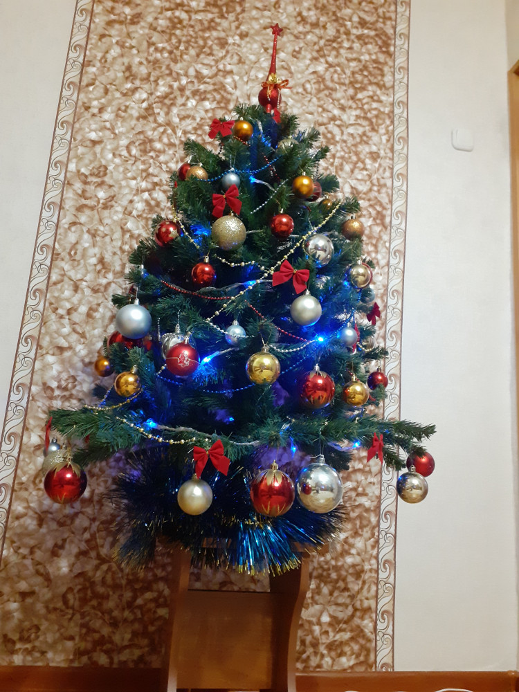 Ёлка странная. Много веточек, с одной стороны, крепкая, в целом получается пушистой, но сделана неаккуратно, иголочки немного сыпались при сборке. Ёлка устойчивая, у нее удобная вершинка.