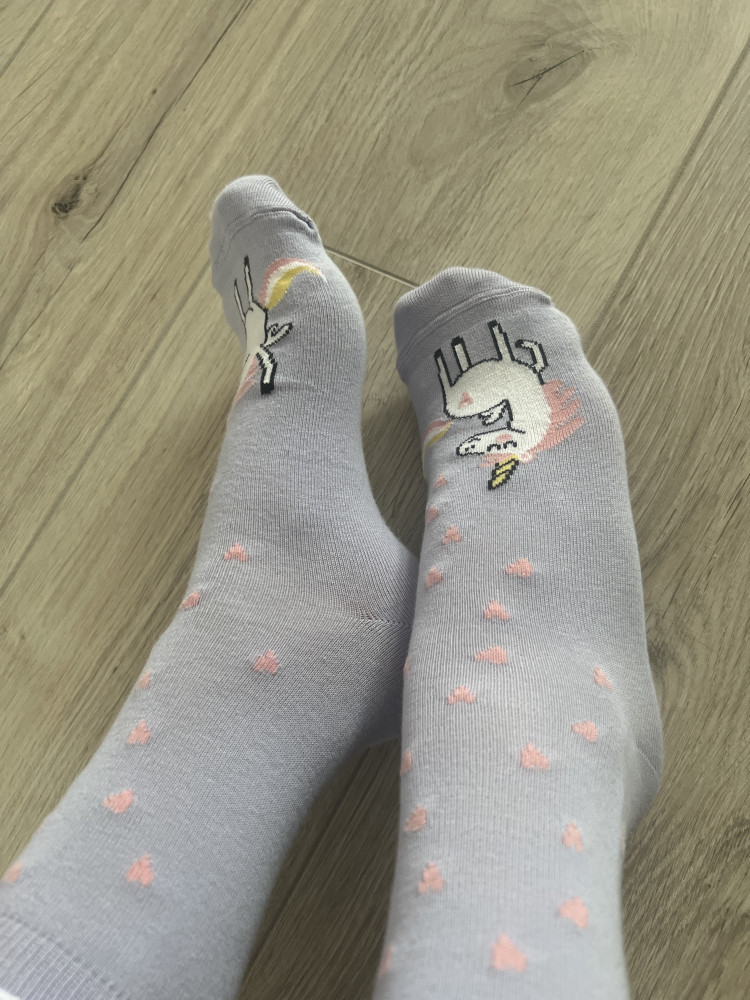 Заказала дочке 24 рр. А носки подошли мне. Они даже чуть большеватые. Теперь ношу я эти единорожки😆