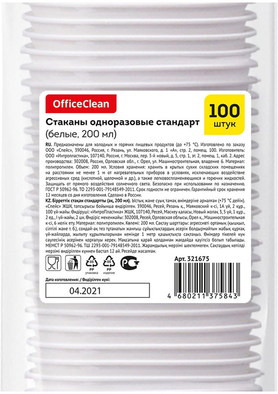 💳 Оплатить за товар можно при получении 🇰🇿 Есть бесплатная доставка по Казахстану 🎁 Копите бонусы с каждой покупки Стаканы одноразовые OfficeClean предназначены для холодных и горячих напитков. Имеют рифленые стенки, изготовлены из белого полипропилена. Максимальная температура использования +75° С. Одноразовые пластиковые стаканы широко используют для обеспечения быстрого питания в офисных столовых, образовательных и производственных учреждениях, предприятиях общественного питания. |