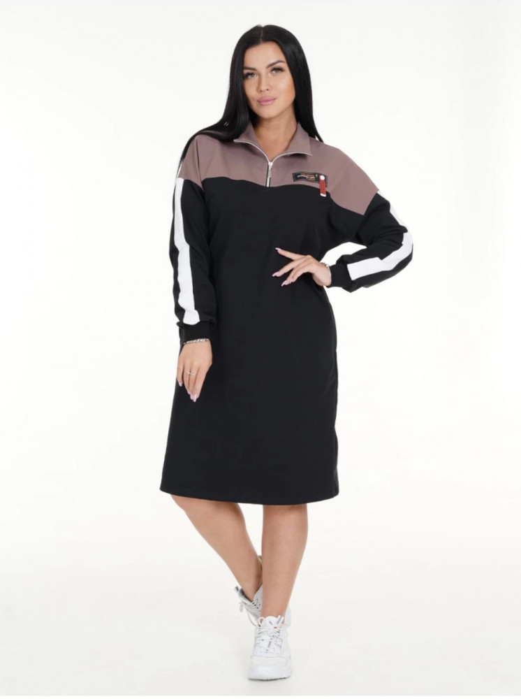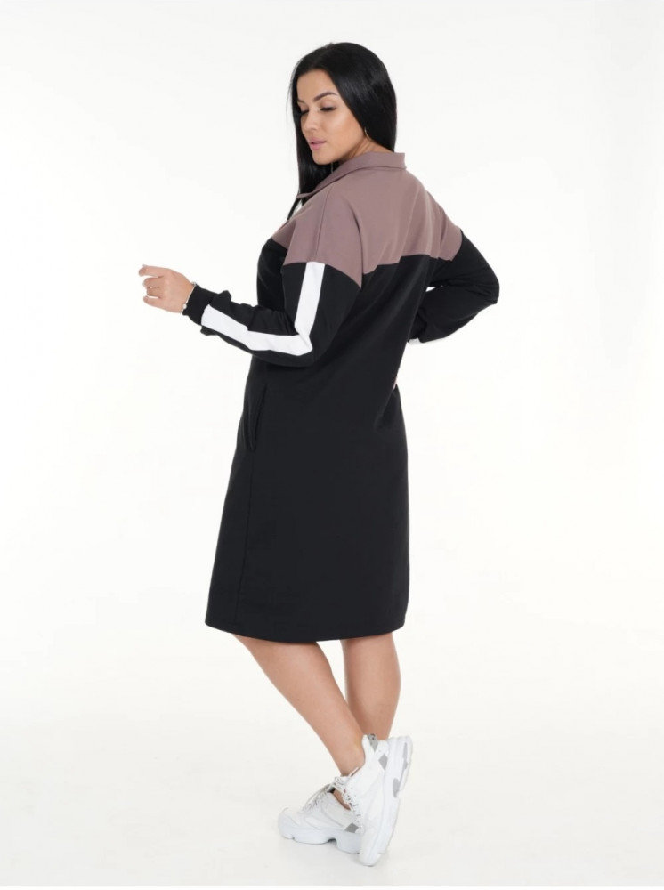 Платье идет размер в размер, цвет, как на фото, на свои параметры 110-82-112 заказала 52 р-р, хотя можно было наверно и 50 взять, но боюсь рукава тогда были бы коротковаты, длина изделия на рост 172 см как раз до колена, рукава приятно обрадовали своей длиной и очень хорошо, что они с манжетом, как оно выглядит более спортивно, само платье очень даже свободно, но это еще и стиль такой, кто любит "в обтяг" берите на два размера меньше, симпатичное повседневное платьице, можно укоротить и получится моднявая туника. Буду надеяться, что после стирки не сядет и не полиняет.