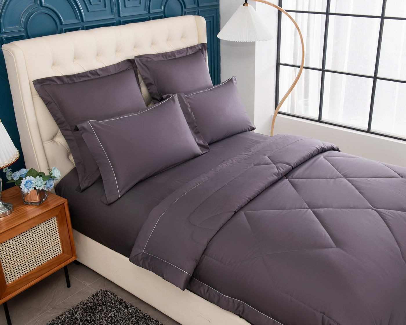 В комплект входят простыня, наволочки и одеяло. Одеяло простеганное, легкое и воздушное, его можно стирать в стиральной машине, предлагается бережная стирка 30 градусов. Благодаря микроволокну в составе наполнителя для одеяла, оно всегда принимает свою начальную форму. Комплекты «Маурицио» выполнены в мягких, классических тонах, от белого и черного тонов, до малахитовых и пепельно-розовых, которые подойдут к любому стилю и любому интерьеру.