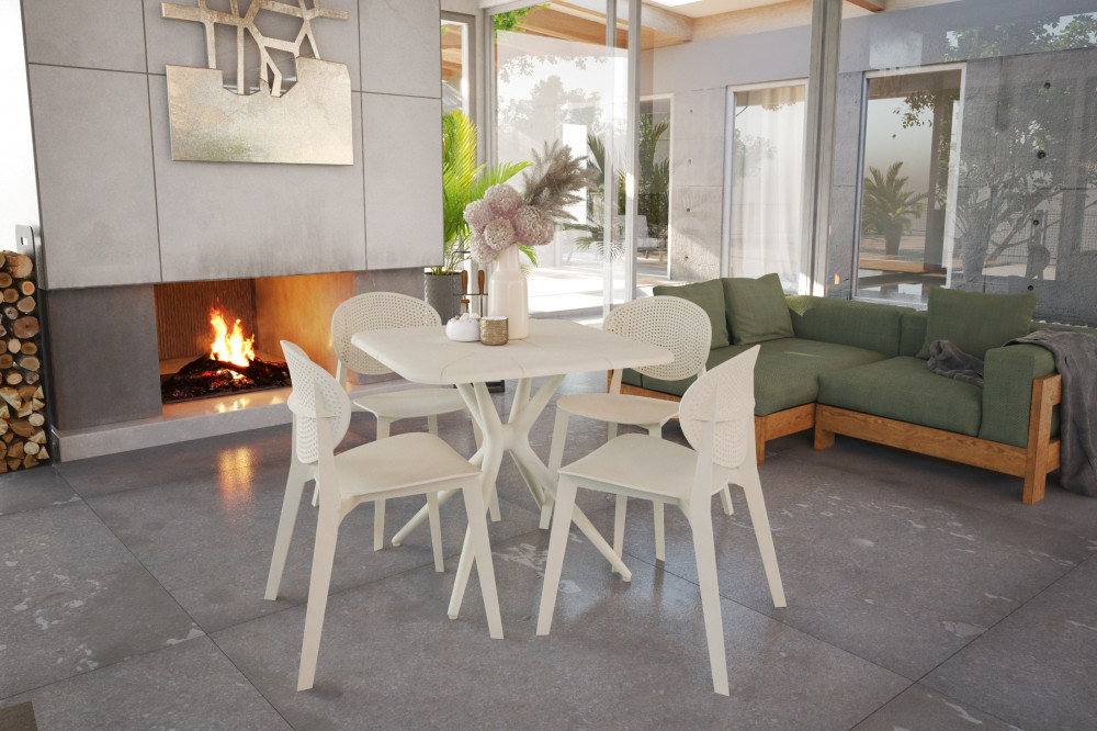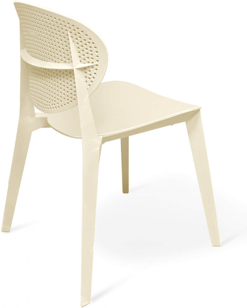 Стул выполнен из атмосферостойкого пластика. Устойчив к прямым солнечным лучам, не деформируется и не изменяет цвет. Можно использовать на открытом воздухе при температуре от −15°С до +40°С. Изогнутая спинка и широкое сидение обеспечивают удобную посадку и подарят новые ощущения комфорта во время отдыха. Штабелируется максимально по 5 штук, что значительно облегчает хранение и использование. С обратной стороны каждого стула, предусмотрена каучуковая защита, которая обеспечивает бережное штабелирование. Каучуковые подпятники каркаса обеспечивают защиту покрытия от царапин и повышают устойчивость стула.